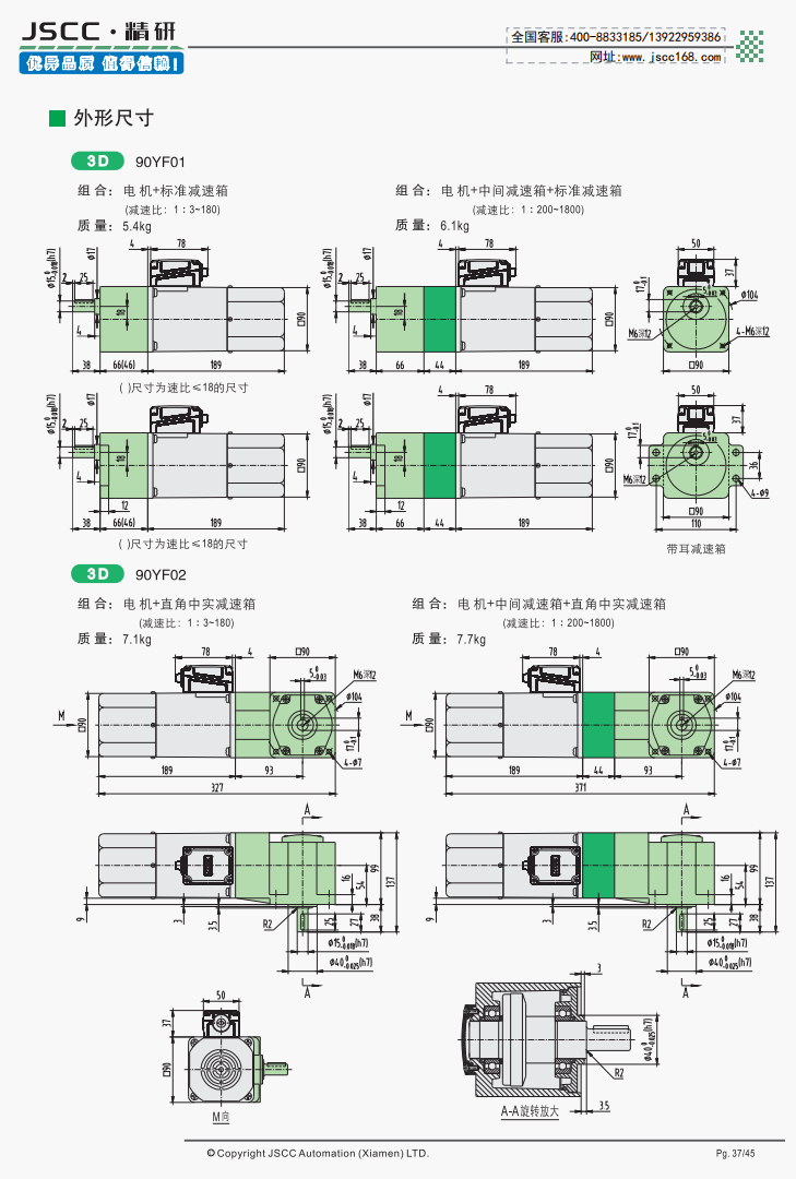 超多種減速箱適配速比范圍1:3~1:1800,可使用二級減速,直角中實,直角中空,圓軸,曲軸等多種裝配方式。
