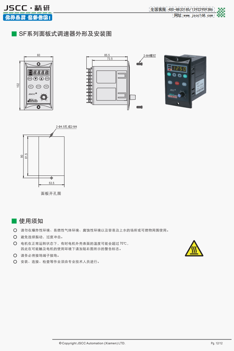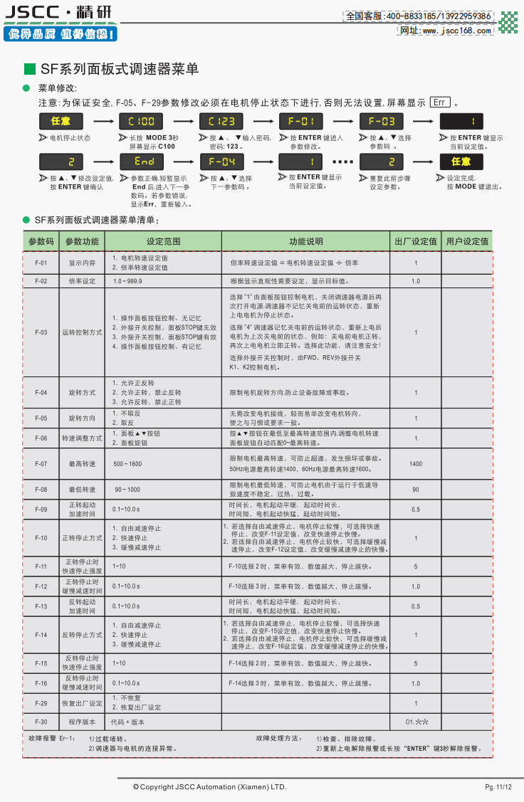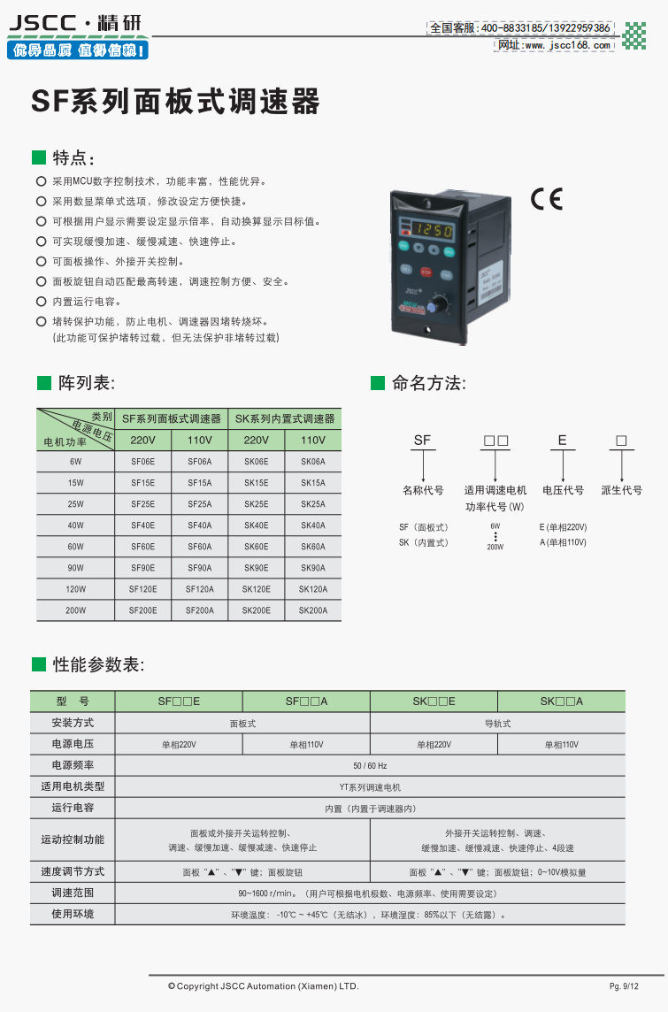 精研電機始終秉承“精益求精,研發創新”的理念為客戶提供優質可靠的產品。 SF系列面板式調速器是SPC系列調速器的升級版,在外觀上SF系列使用數顯菜單,修改設定方便快捷。而在功能上,新增的緩慢加速,緩慢減速等功能能幫助客戶實現更全面的控制。 提示SF系列需要搭配我司YT系列調速電機使用,在選購本產品時請注意。